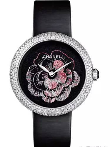 2015年香奈兒推出的mademoiselle prive山茶花刺繡腕表,感覺每看一次時間都很燒腦▼