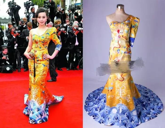▲范冰冰戛納紅毯龍袍 和 淘寶同款(這條龍的表情也太輕浮了)