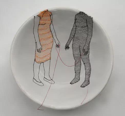當繡與瓷器相遇,會碰撞出什么樣的火花?來自越南的藝術家將透明薄紗覆蓋在陶瓷器物上進行繡,在瓷器的映襯下,極簡風格的線條勾勒出柔和而又安靜的氛圍,獨具特色。