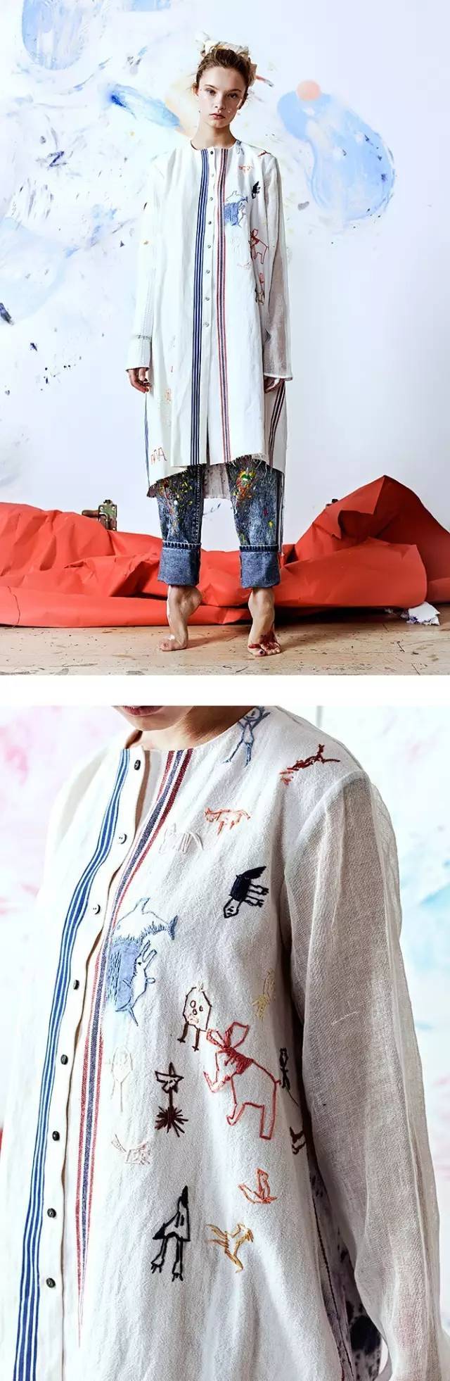 吸引人的,卻是作品中看似隨性實則獨具匠心的整體畫面。服裝刺繡就是好的代表。