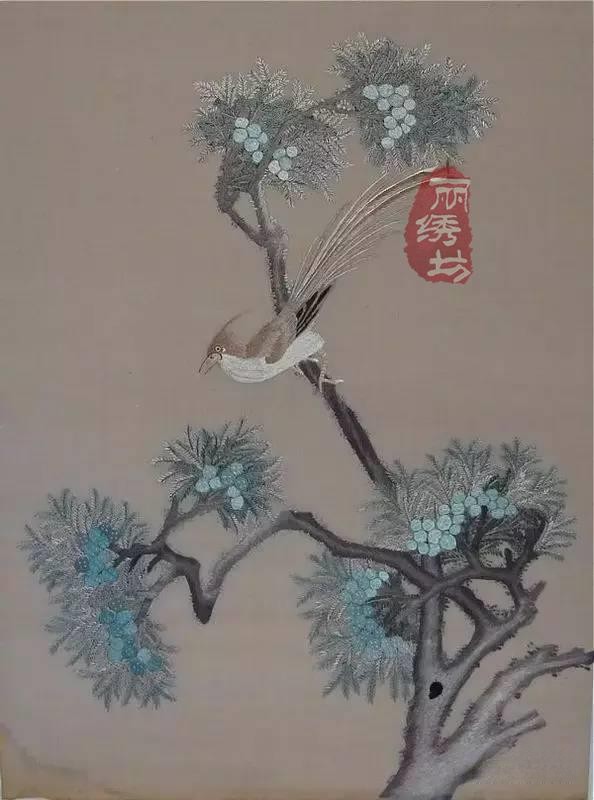 杭繡,亦稱“吉繡”,起源于漢代,至南宋為極盛時期。杭繡以男工為主。因此,行業中形成只收男工不收女工,只傳媳婦不傳女兒的規矩,此風一直沿襲到民國,成為杭繡一大特點。杭繡的圖案設計,內容大多取材于民間喜聞樂見的龍、鳳、麒麟、蝙蝠、孔雀、牡丹、壽桃、如意、八卦、西湖風景等傳統圖案。