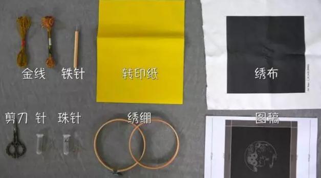 首先需要描稿,將繡布、轉印紙、圖稿從下到上依次疊好。轉印紙有顏色的一面朝下。