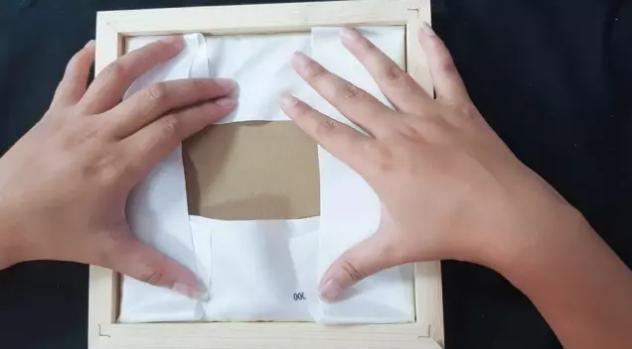 把繃好的繡布裝入相框中,確保不會移動位置。